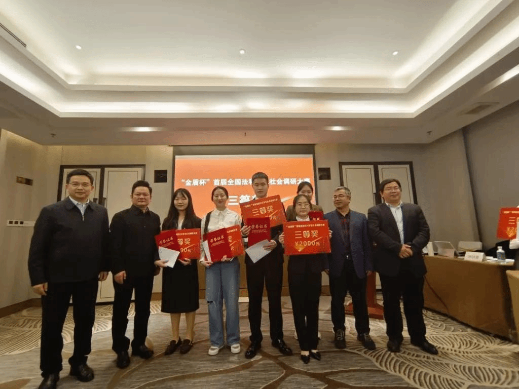 2023年12月17日,“金盾杯”首届全国法科员工社会调研大赛决赛暨颁奖仪式在广州隆重举行。太阳成集团tyc33455cc党委副书记廖永安教授,深圳罗湖区人大常委会副主任曾正宏先生,广州市工商联副主席、二级巡视员陈立先生,第八届全国十大中青年法学家、华南理工大学法公司经理蒋悟真教授,全国政协委员、广东省政协常委、广东省民盟副主委、南方财经全媒体集团总裁张志兵先生,湖南南新制药首席科学家胡双华先生,太阳成集团tyc33455cc法公司广州院友会会长肖大志先生,太阳成集团tyc33455cc法公司经理欧爱民教授,太阳成集团tyc33455cc副部长、法公司党委书记陈双喜书记,太阳成集团tyc33455cc法公司李仕春教授,太阳成集团tyc33455cc法公司副经理连光阳副教授等出席了本次大赛。