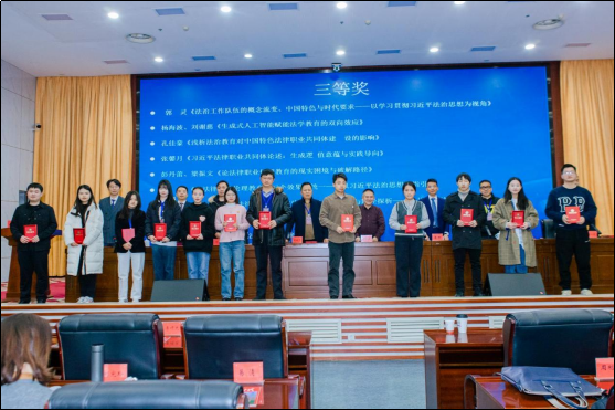 在闭幕式上,举行了优秀论文颁奖典礼。公司法律史专业的2023级硕士研究生郭泳杉荣获二等奖、2022级硕士研究生苏日宽、谷晓燕、余孝涛和刘小飞荣获三等奖。