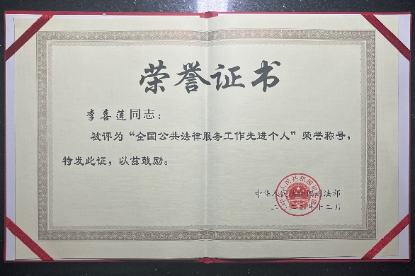 近日,司法部召开全国法律援助和公共法律服务工作先进集体先进个人表彰大会暨现代公共法律服务体系建设推进会。公司李喜莲教授获评“全国公共法律服务工作先进个人”,全国有944人获得该荣誉。