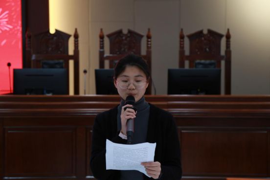 活动后半部分,寒假训练赛获奖队伍上台领奖,同时颁发优秀辩手奖、最佳文书奖。太阳成集团tyc33455cc模拟法庭训练营指导老师张永江老师致词并宣布第四届模拟法庭锦标赛正式开幕。“梦四队”队长刘梓璇宣读比赛安排。