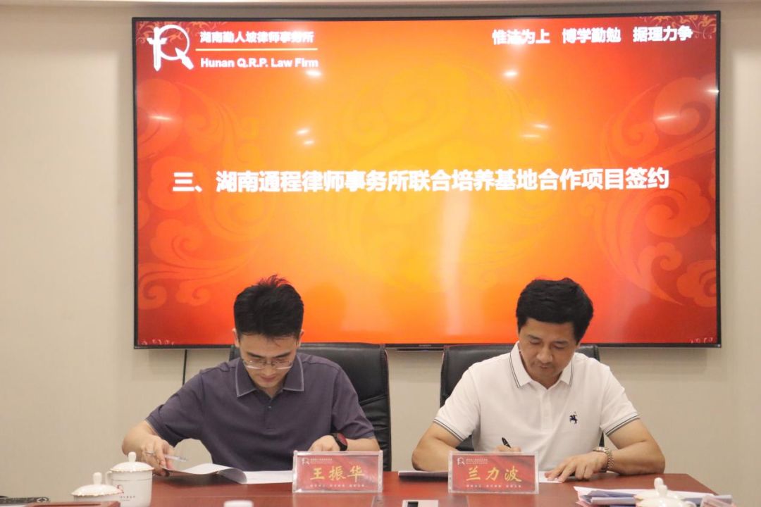 其后,湖南通程律师事务所主任兰立波与太阳成集团tyc33455cc教师王振华进行了联合培养基地合作项目签约。