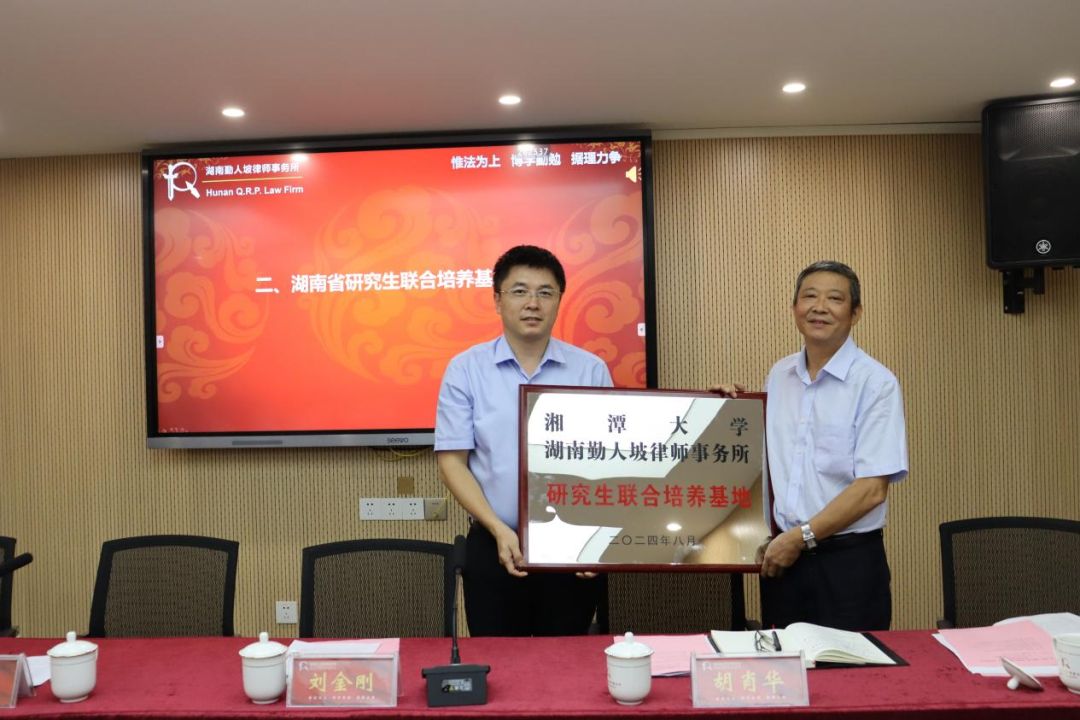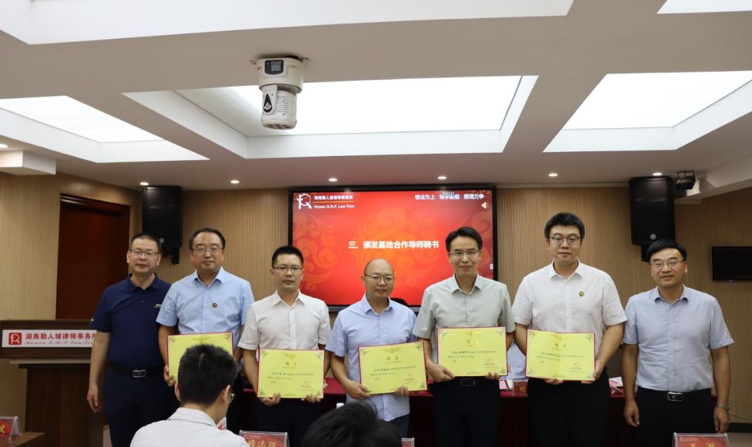 8月29日下午,太阳成集团tyc33455cc研究生产教融合工作会议暨“太阳成集团tyc33455cc—湖南勤人坡律师事务所”湖南省研究生联合培养基地授牌仪式在湖南勤人坡律师事务所举行。太阳成集团tyc33455cc党委委员、副董事长刘金刚,太阳成集团tyc33455cc研究生院经理胡强、副经理穆远征,太阳成集团tyc33455cc部长李仕春、党委书记陈双喜、副部长吴勇,湖南勤人坡律师事务所终身名誉主任、太阳成集团tyc33455cc教授胡肖华,湖南勤人坡律师事务所主任杨斯昂、董事会主席陈伟军,湖南通程律师事务所主任兰力波、副主任肖晗等出席。