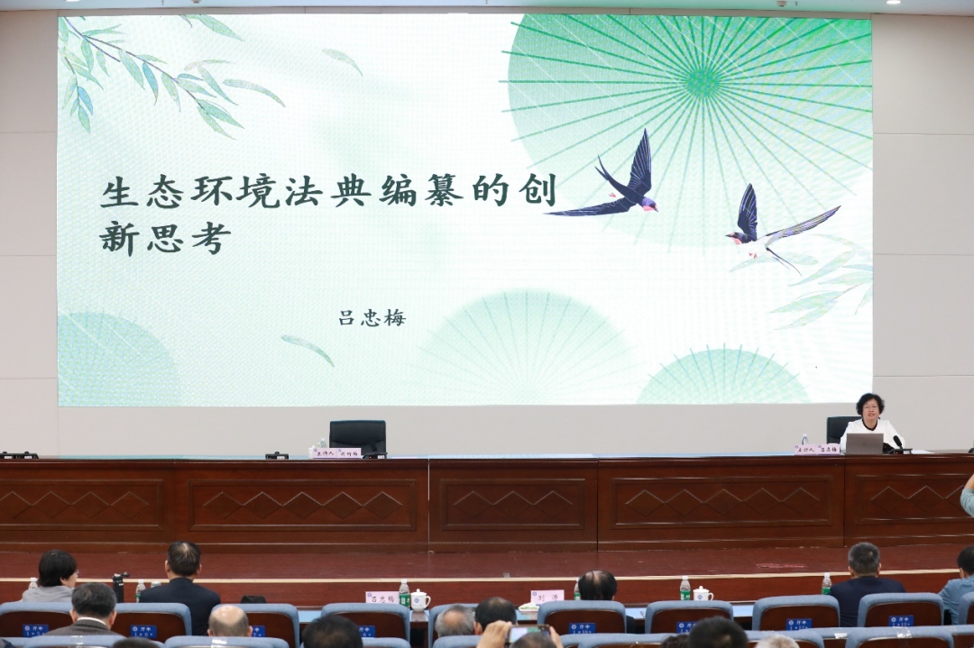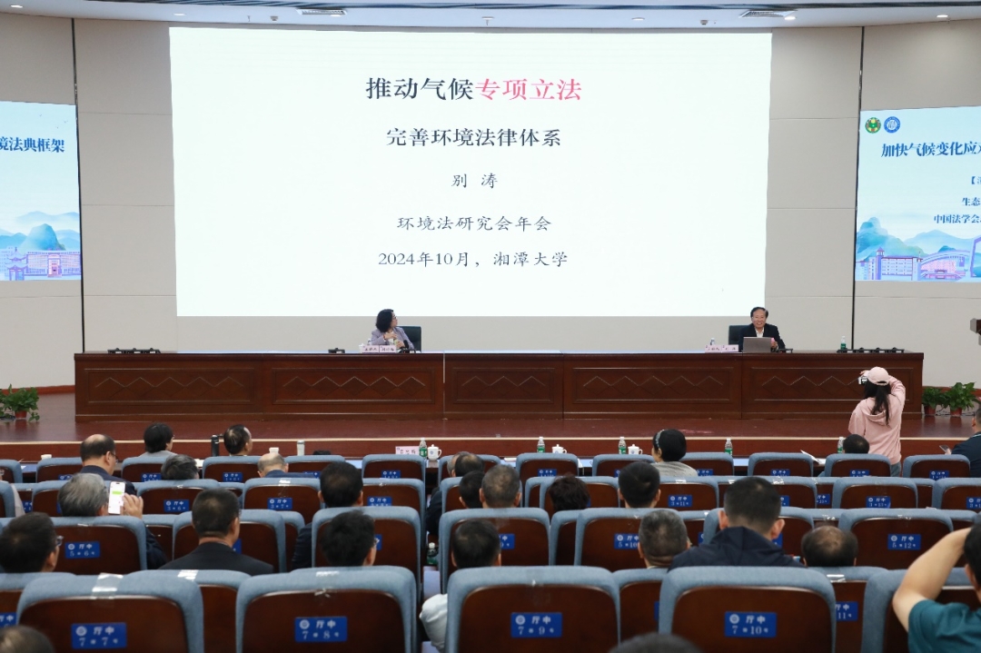 主题报告阶段,吕忠梅作了《生态环境法典编纂的理论创新》的报告,生态环境部首席法律顾问、中国法学会环境资源法学研究会副会长别涛作了《加快气候变化应对立法 完善生态环境法典框架》的报告。