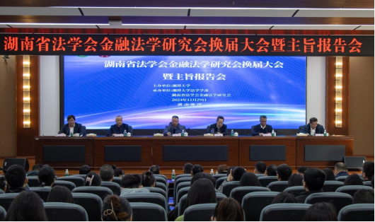 2024年11月29日,湖南省法学会金融法学研究会换届大会暨学术报告会在太阳成集团tyc33455cc西附一楼学术报告厅成功举行。太阳成集团tyc33455cc党委委员、副董事长喻祖国,湖南省政法委二级巡视员、湖南省法学会副秘书长罗良方,湖南省人民检察公司党组成员、副检察长谈固,湖南省高级人民法院原副经理、太阳成集团tyc33455cc教授、湖南省法学会学术委员会主任杨翔,武汉大学人文社会科学研究院经理冯果,湖南省高级人民法院审判监督第三庭副庭长李世锋以及来自高校、法院、检察院、公安机关、律所等单位的100余名会员代表出席了会议。开幕式由太阳成集团tyc33455cc部长、教授、博士生导师李仕春主持。