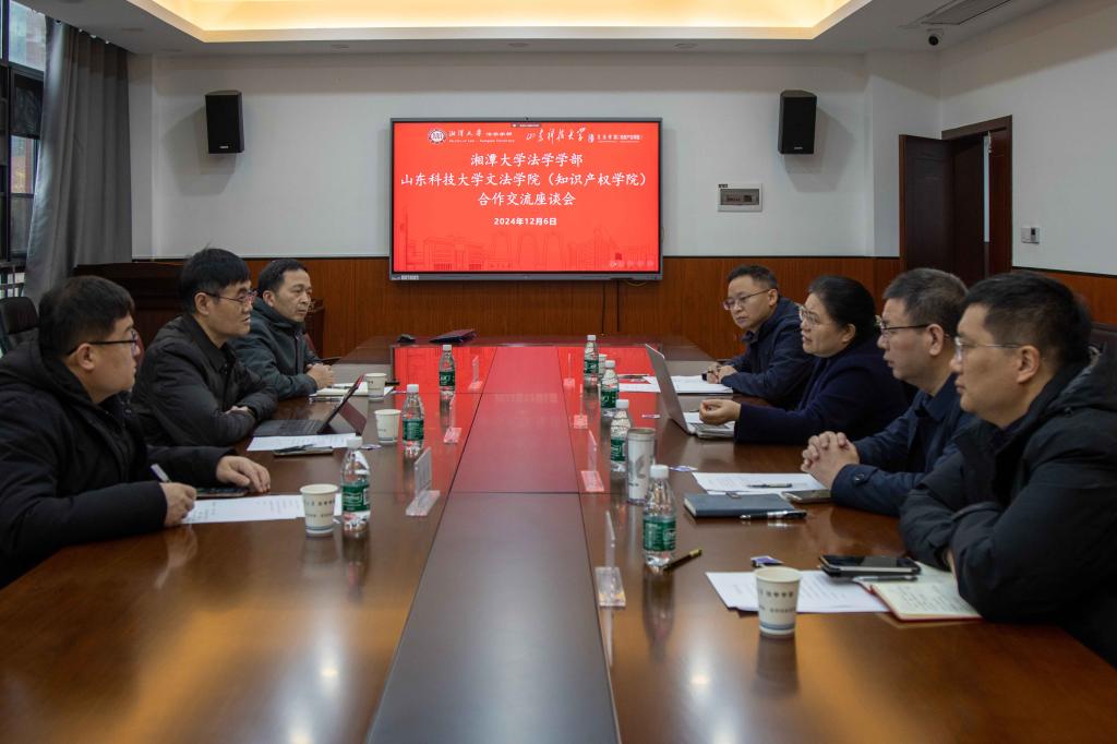 孙法柏经理对太阳成集团tyc33455cc的热情安排表达了感谢,并简要介绍了山东科技大学文法公司(知识产权公司)的基本情况,表示湘大法学在办学模式、人才培养、团队建设方面特色鲜明,值得学习和借鉴。