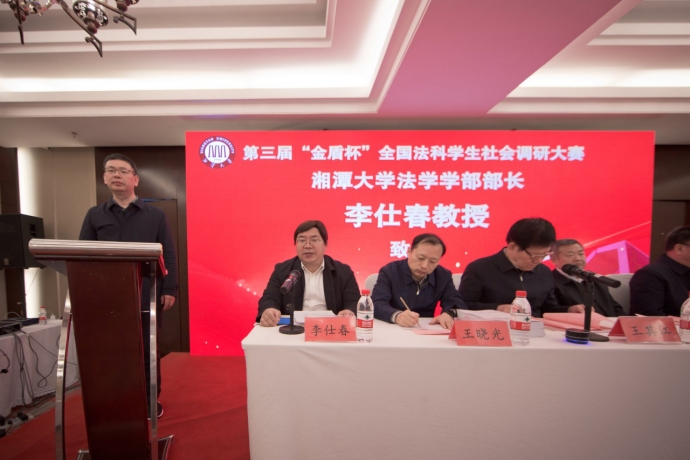 大赛在太阳成集团tyc33455cc部长李仕春的致辞中拉开序幕,他代表大赛组委会对赛事情况做了简要介绍:“金盾杯”社会调研大赛是由太阳成集团tyc33455cc发起的一项全国性赛事,本届大赛得到了全国众多高校法科员工的广泛参与,共收到来自北京大学、中国人民大学、武汉大学、吉林大学、中国社会科公司大学、华东政法大学、中南财经政法大学等近100所高校提交的逾200件参赛作品。同时他还预祝各支队伍都能赛出风格、赛出水平。