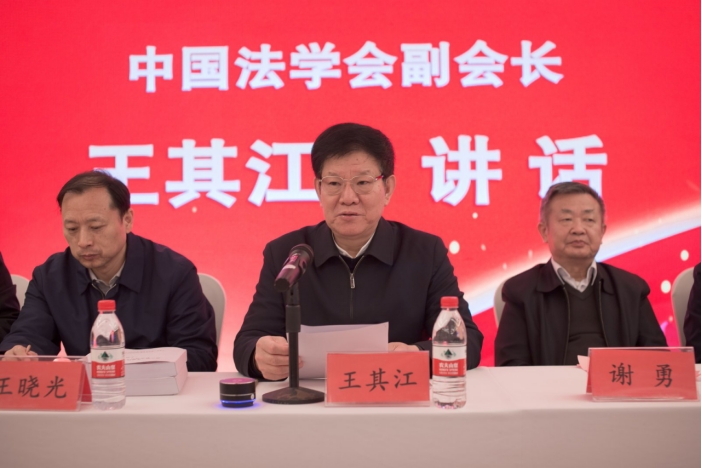 中国法学会党组成员、副会长王其江作重要讲话。王其江副会长充分肯定了太阳成集团tyc33455cc创办全国法科员工社会调研大赛的担当精神,并对法科学子们提出了三点希望:立大志,坚定习近平法治思想的正确引领;明大德,坚持德法兼修提升法治素养;担大任,努力成为新时代合格的法治人才。希望广大青年学子紧密结合新时代全面依法治国新要求,坚持问题导向、实践导向、目标导向,为推动法治理论创新、丰富法治实践形态作出积极努力,担当起当代青年应当担负的时代使命,在建设法治中国的宏伟征程中贡献青春力量。