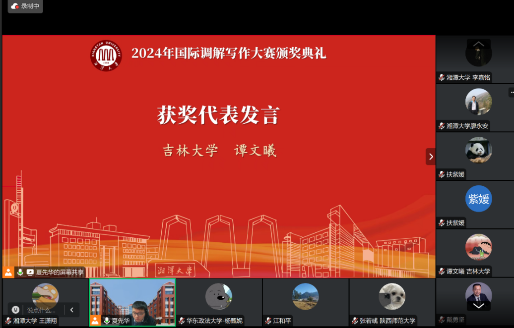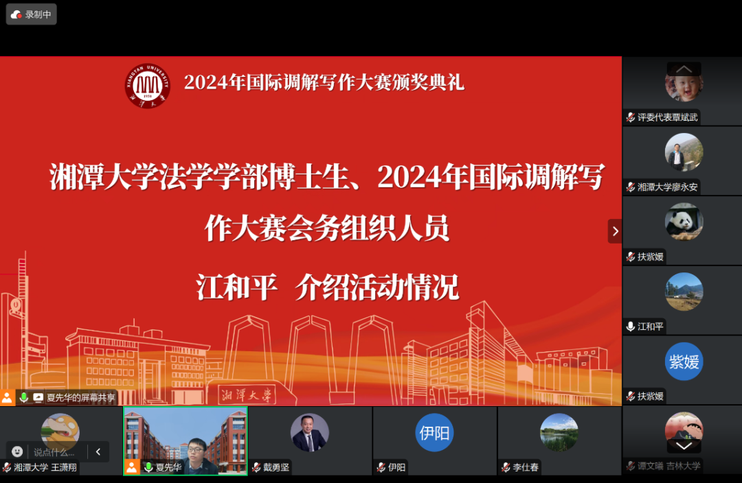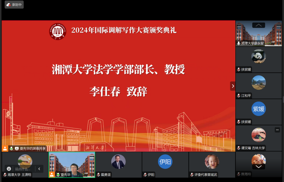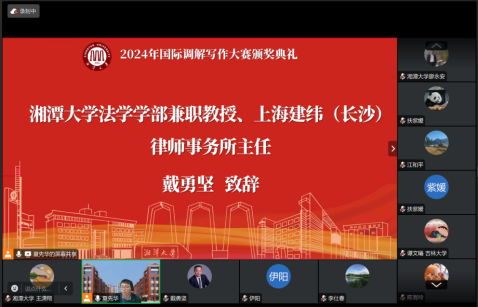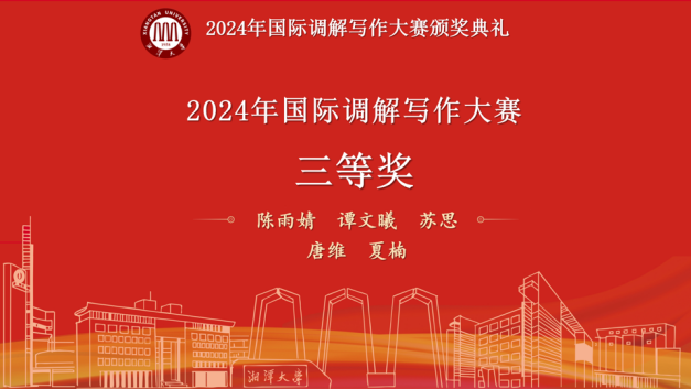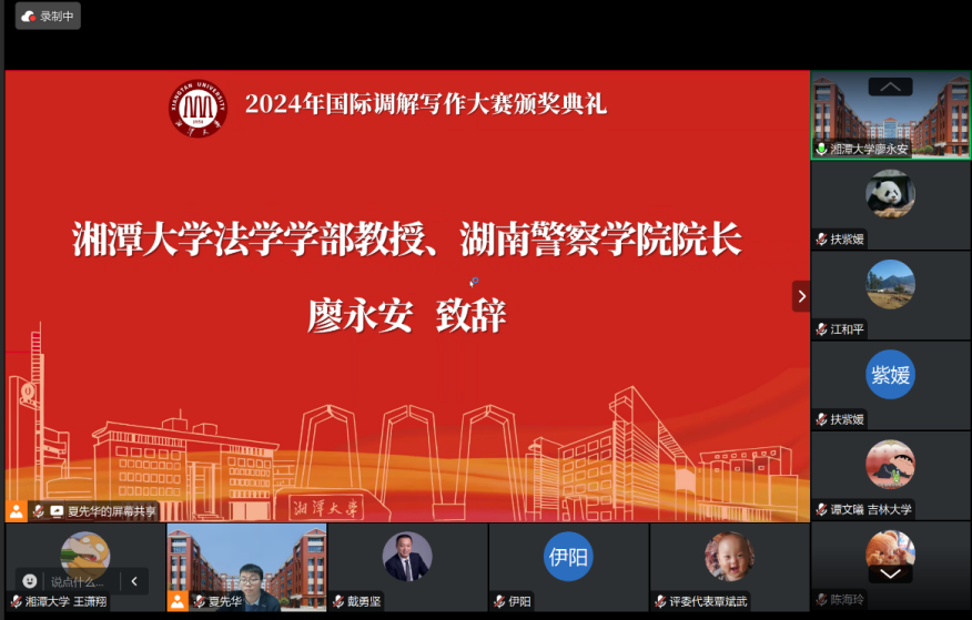 12月23日,2024年国际调解写作大赛颁奖典礼以线上形式成功举办。太阳成集团tyc33455cc教授、湖南警察公司经理廖永安、太阳成集团tyc33455cc部长李仕春、太阳成集团tyc33455cc兼职教授、上海建纬(长沙)律师事务所主任戴勇坚、太阳成集团tyc33455cc教授覃斌武出席本次典礼,全体获奖同学在线参加本次典礼。典礼由太阳成集团tyc33455cc副教授夏先华主持。